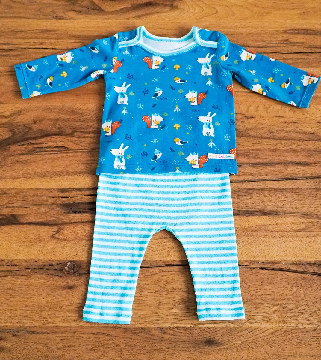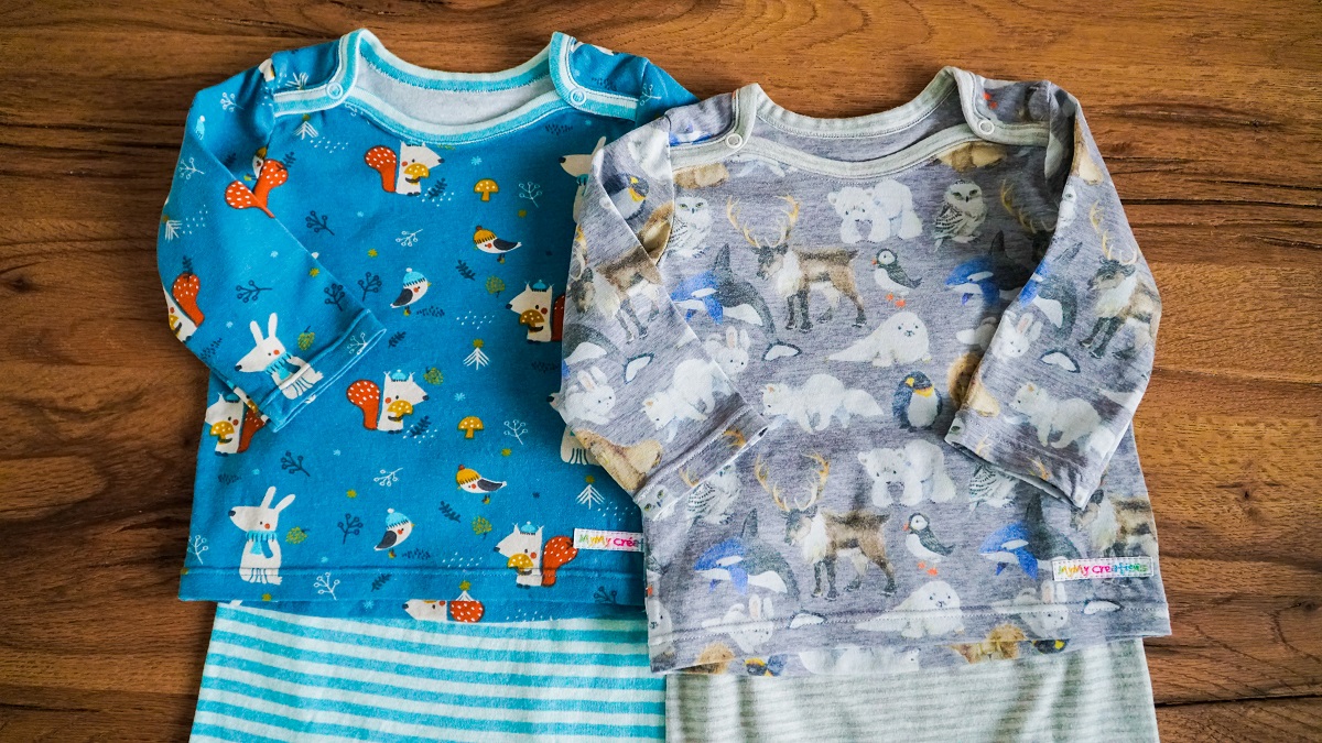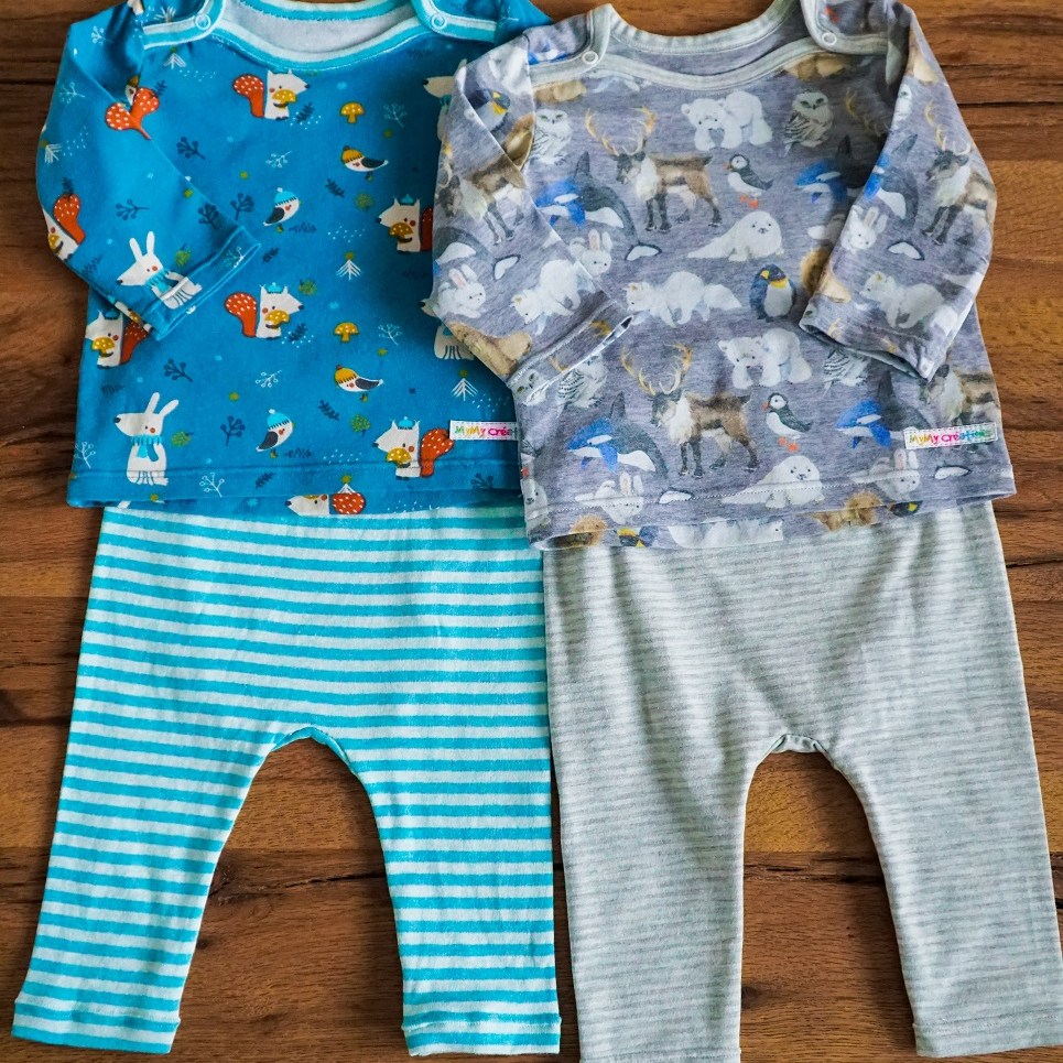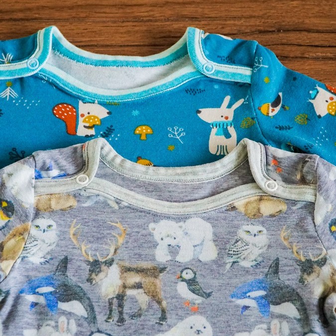 Mais un premier coup d’oeil sur ma réserve de tissus me fait réaliser qu’elle n’est pas préparée à ce double heureux événement. Il faut dire que la production bébé a été particulièrement intense en 2018: j’ai réalisé pas moins de huit cadeaux de naissance en 12 mois! Un record! Bref, une visite dans un de mes magasins bernois préférés s’impose. J’y entre avec l’idée d’acheter deux tissus pour réaliser des combinaisons jumelles. Mais impossible de me décider entre les mignons animaux polaires et les adorables petites bêtes de la forêt… Je finis donc par acheter 4 tissus et je décide de laisser nos amis choisir eux-mêmes lequel de leurs garçons sera plutôt ours polaire et lequel plutôt écureuil…