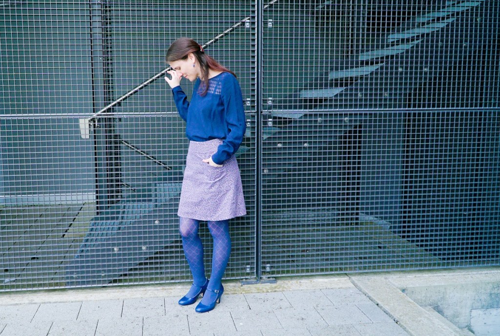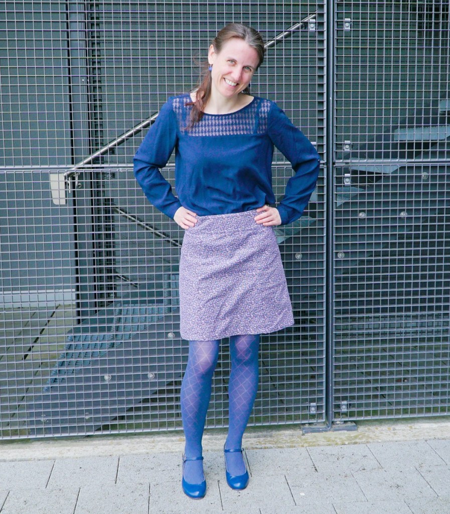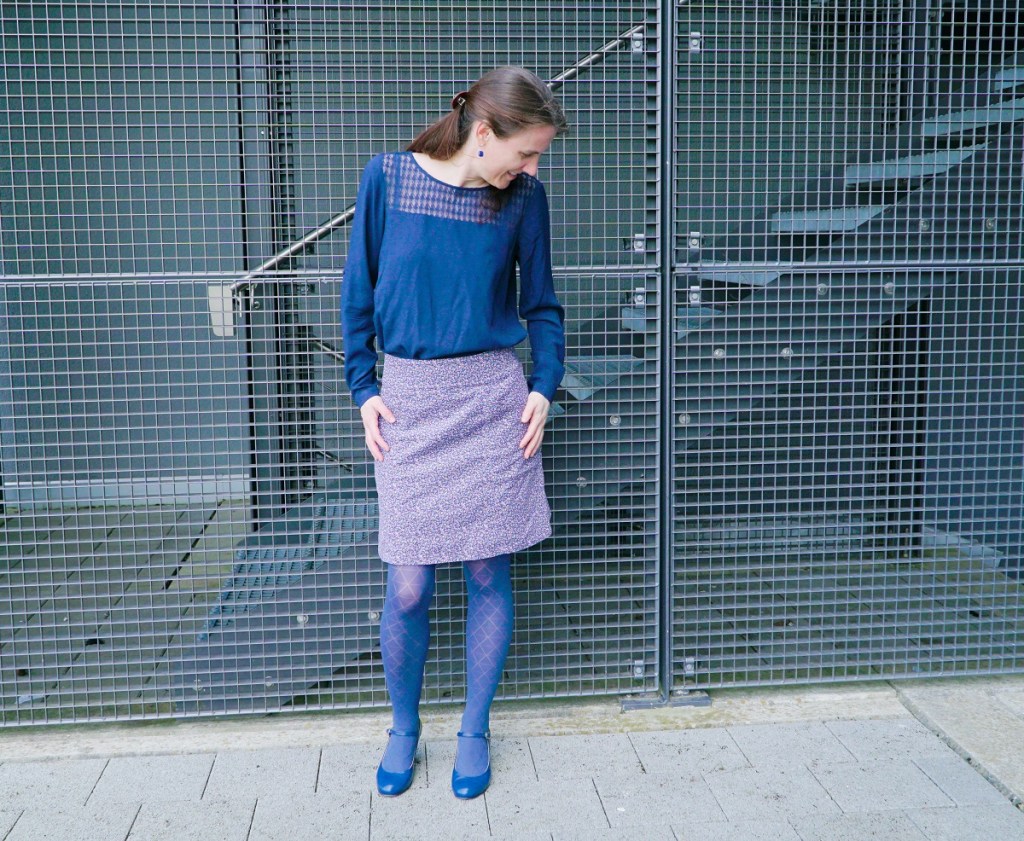 Malgré les nombreuses journées couvertes en ce début de printemps, force est de constater que je n’ai pas été très assidue dans la rédaction d’articles sur mon blog. Ce qui ne signifie pas que ma productivité en couture ait diminué – au contraire! Pour la première fois depuis que je rédige ce blog, j’ai encore plusieurs créations en réserve à vous montrer. Comme par exemple cette mignonne petite jupe en velours milleraies, terminée en fait en automne 2018 et photographiée devant chez moi ce printemps.