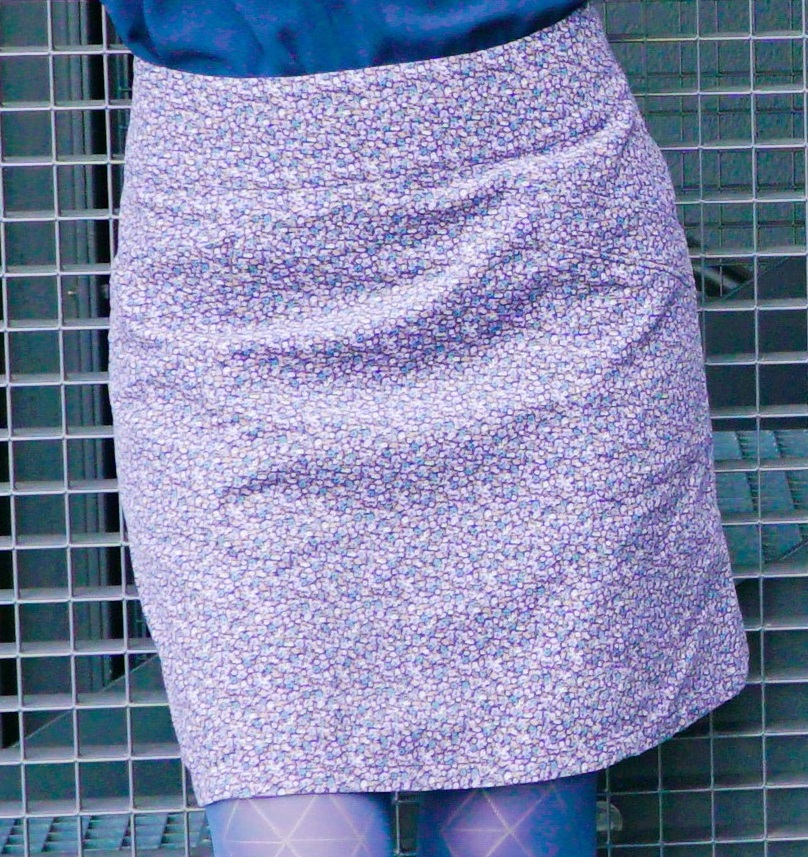 Il s’agit de la jupe n°18 du magazine n°12 de Simplicity, publié en français sous le nom de Tendances Couture. J’ai choisi le 36, la plus petite taille proposée, et pour une fois je n’ai dû modifier ni la largeur ni la longueur. Par contre, j’ai dû faire une adaptation pour mon fessier, en ajoutant 4 cm de tissu au niveau des hanches sur le dos. Une modification facile à faire, il faut juste y penser avant de couper les pièces. Heureusement que j’ai pris le temps de faire un essai sur un tissu bon marché, cela m’a permis de constater que le dos de la jupe remontait disgracieusement et que je devais procéder à cet ajustement. Le résultat final est probant! Pour la marche à suivre de cette modification de patron, je me suis référée aux explications de ce site.