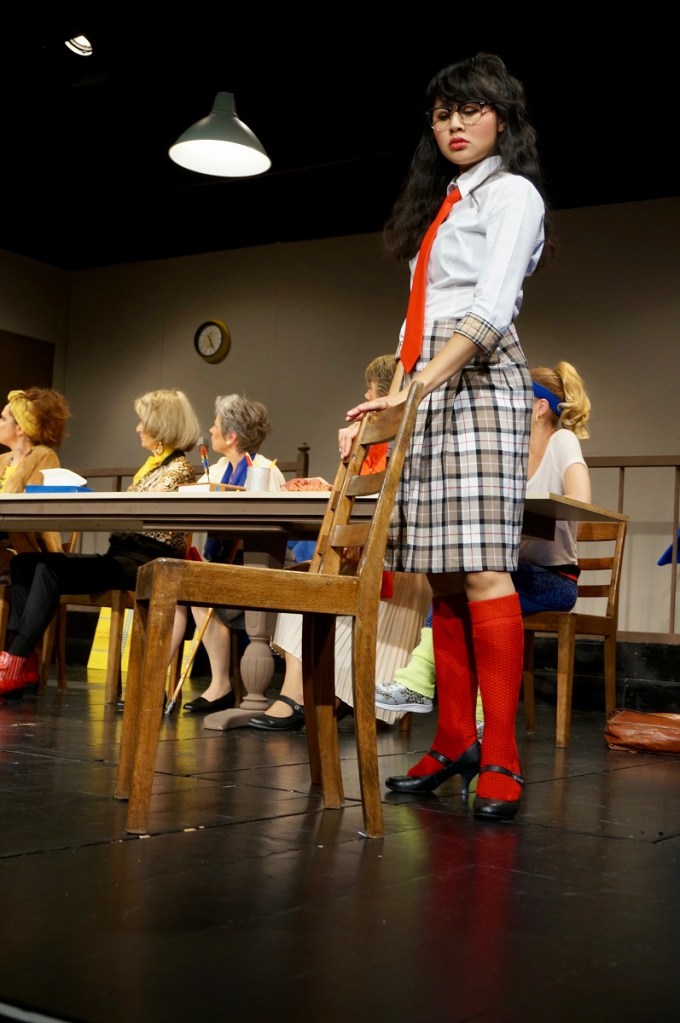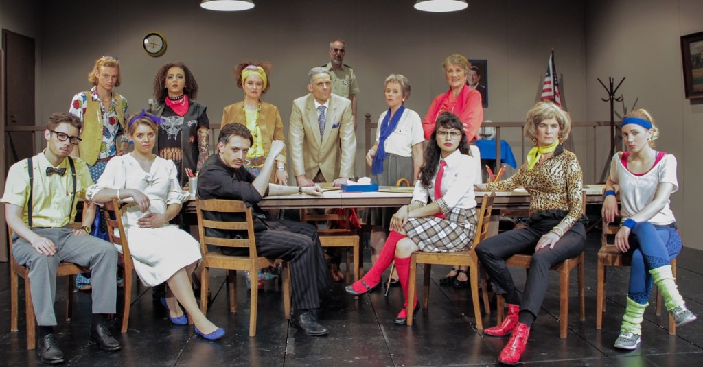 Voilà déjà la deuxième fois que je participe à la création des costumes pour la troupe anglophone Upstage de Berne. En mai 2019, la troupe met en scène la pièce Twelve Angry Jurors de Reginald Rose. Douze jurés civils doivent décider du sort d’un jeune homme accusé d’avoir tué son père. La pièce est souvent montrée pour illustrer les phénomènes de dynamique de groupe: les jurés ont des caractères stéréotypés, il se forme des alliances, la dynamique se modifie, les alliances tombent, d’autres apparaissent… Nul ne sait si l’accusé est vraiment coupable. Alors que les arguments des jurés sont convaincants, les raisons qui les motivent ne le sont pas toujours.