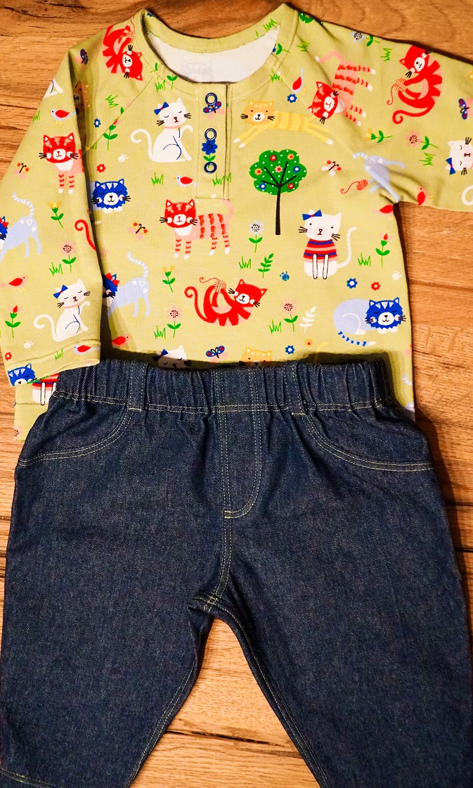 Le patron vient du magazine Burda 12/2016 (modèle 132). Définitivement un modèle que je ne referai plus… L’entrejambe boutonnée est inutilement compliquée – et les explications tordues de Burda ne font que souligner l’incompréhension générale… Finalement je m’en sors tant bien que mal, mais en regrettant de ne pas avoir choisi un patron d’Ottobre comme je le fais d’habitude pour les bébés.