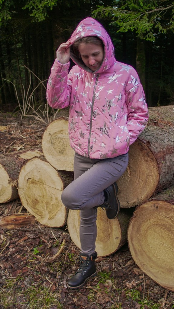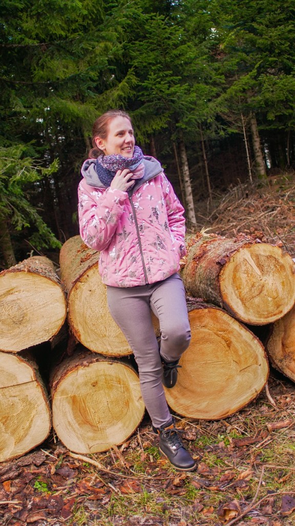 Le modèle est en fait très simple à réaliser. J’ai commencé par assembler les devants avec le dos. La capuche est simplement constituée de deux pans cousus l’un sur l’autre. Deux pinces au niveau des épaules lui donnent une jolie forme. Et voilà le premier petit défi sur les côtés de la veste: les deux poches prises dans la couture. Je les ai cousues dans le même tissu que ma doublure – un joli jersey de coton gris. C’est la première fois que je couds des poches prises dans la couture… En général, j’évite de réaliser des poches sur mes créations, mais là sur une veste j’ai décrété que cela en valait la peine. Et je m’en suis vraiment réjouie plus tard… pendant ma balade hivernale en forêt!