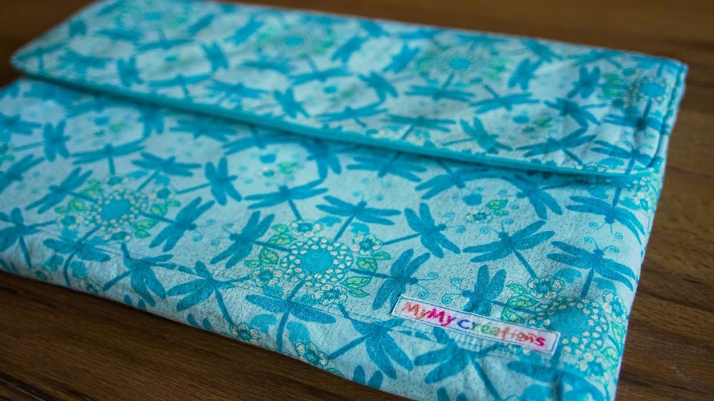 Pour toutes celles et ceux qui ont dû emballer leur ordinateur portable et le ramener à la maison afin de pouvoir continuer à travailler entre leurs quatre murs, voici une création textile tout à fait à propos. Il s’agit d’une pochette de protection sur mesure, réalisée dans un coton turquoise lumineux au motif de libellules. Parce qu’il fallait bien un peu de légèreté et d’élégance au milieu de ce monde devenu un peu fou.
