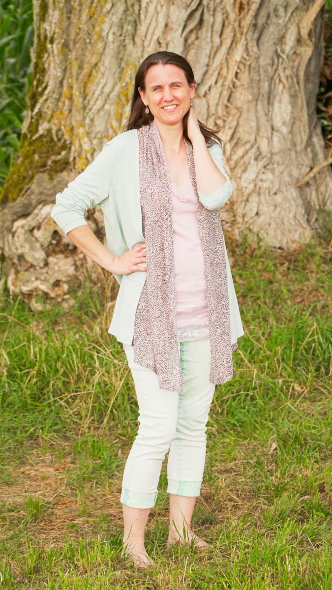 Les températures caniculaires s’étant heureusement un peu rafraîchies ces derniers jours, c’est l’occasion de ressortir la petite veste en jersey menthe à l’eau que j’ai terminée au début du printemps 2020. Bi-matière et bicolore, elle apporte une touche originale au traditionnel et si pratique gilet longues manches en jersey.