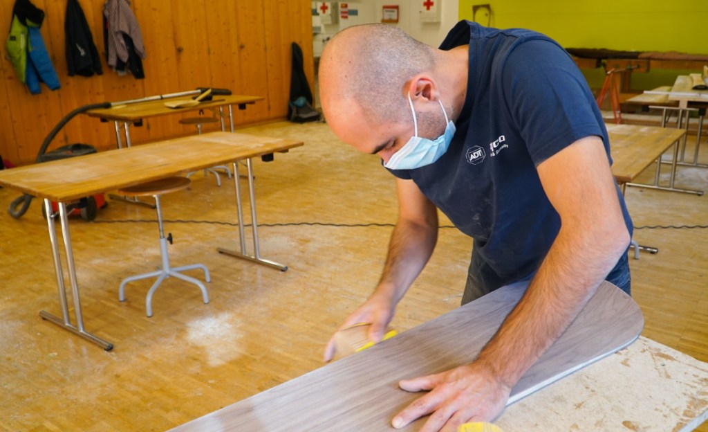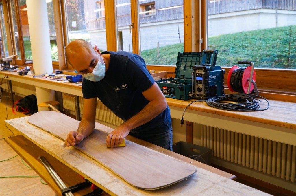 Héctor n’est pas peu fier de présenter le résultat de deux jours de travail artisanal au centre de cours de Ballenberg! Ne reste plus qu’à vérifier si son snowboard fait maison glissera aussi sur la neige… En tout cas, nous croisons les doigts pour que les stations de ski restent ouvertes cet hiver!