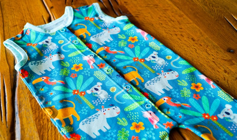 Un modèle adorable et un tissu qui met immédiatement de bonne humeur! Un joli cadeau de naissance réalisé en un tour de main.