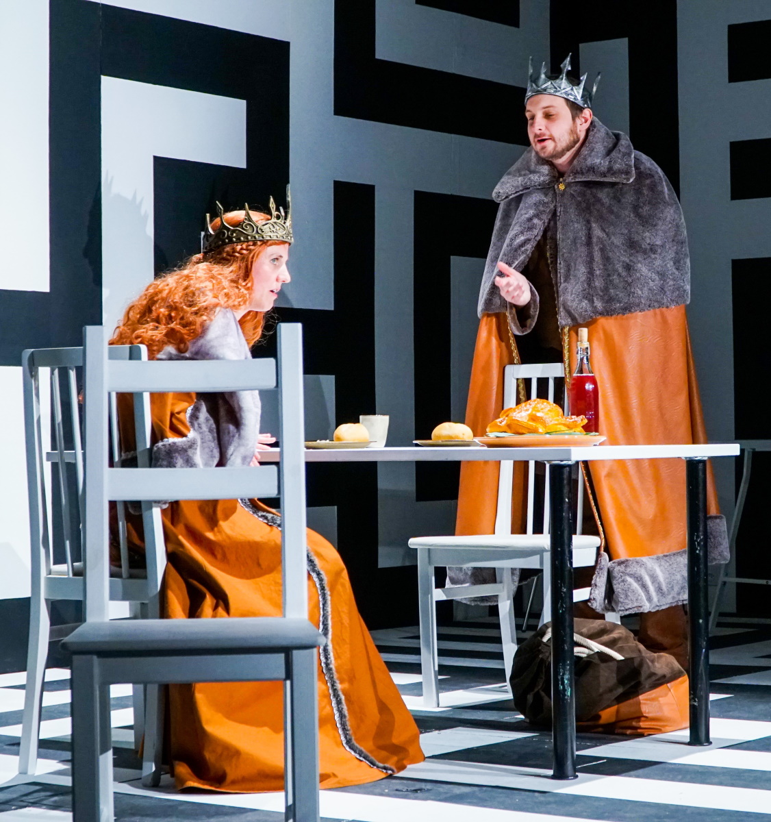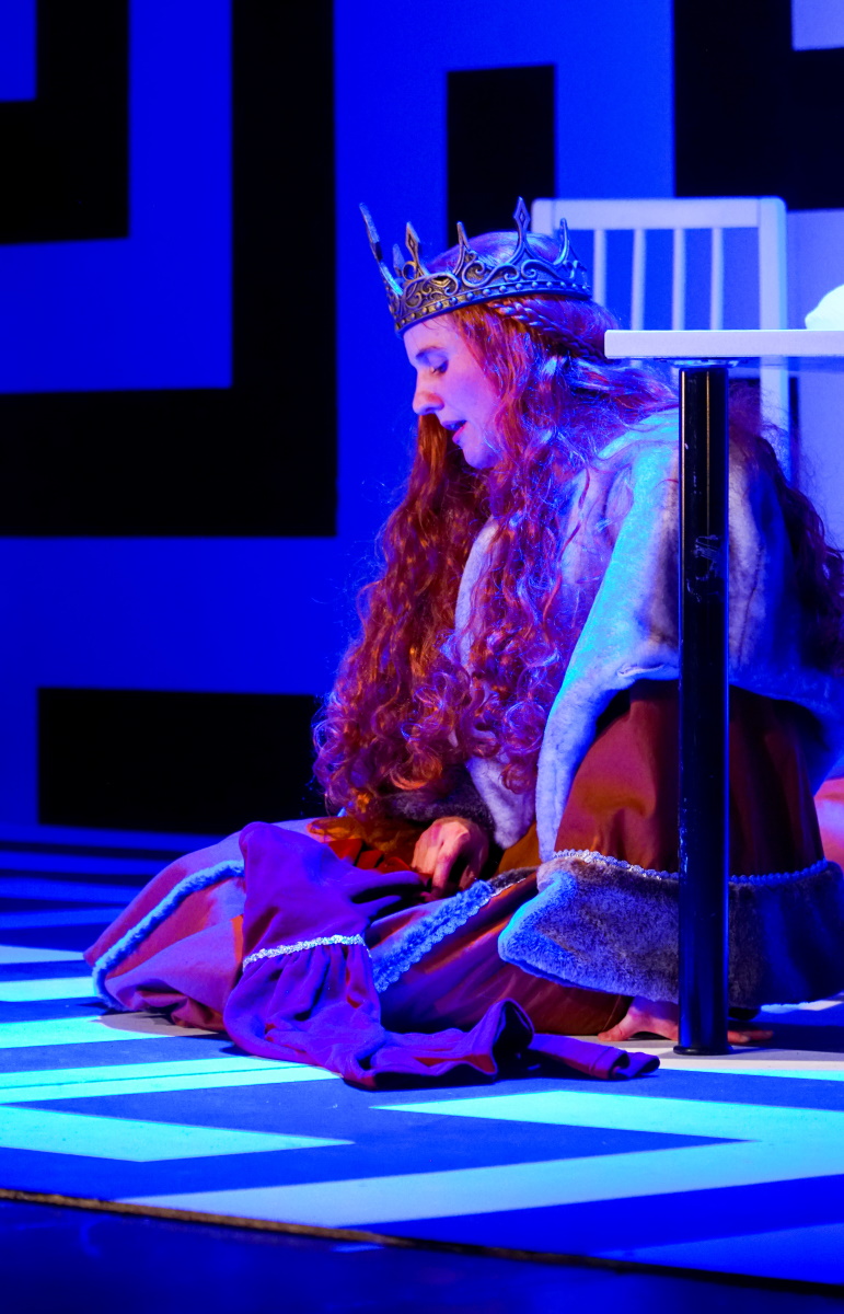 Je joue cette pièce avec l’association Upstage, une des deux associations de théâtre amateur anglophone de Berne. Ce n’est pas la première fois que je participe à l’une de leurs productions: j’avais déjà été sur scène en 2018 dans Cat on a hot tin roof, et j’ai participé à la réalisation des costumes pour Mr Scrooge en 2018, Twelve angry jurors et la comédie musicale Pippin en 2019. Dans A Maze, je joue trois rôles différents sur scène – un grand défi pour un comédien amateur! – et je réalise également trois costumes: celui de la reine (moi-même), du roi et du mystérieux Galgalim, l’architecte du labyrinthe.