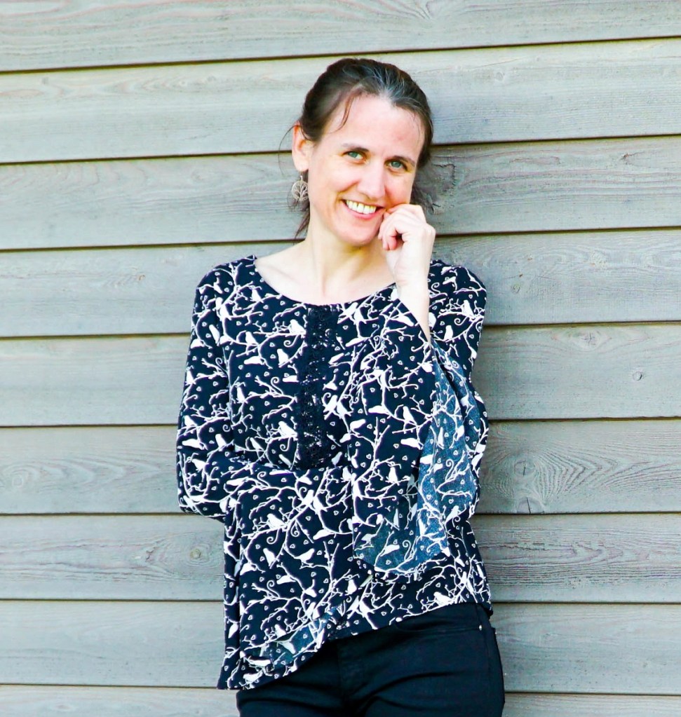 Avec son imprimé aux oiseaux et ses manches longues qui se terminent sur un large volant, le modèle de blouse que je vous présente aujourd’hui célèbre la légèreté.