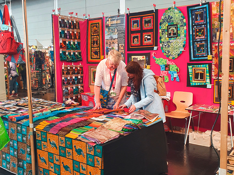 Le motif brodé de l’arbre africain attire tout particulièrement mon attention: il s’agit d’un projet original visant à créer des emplois pour des femmes peu scolarisées en Afrique du Sud. Elles apprennent à broder des motifs – trop beaux! – qui sont ensuite vendus à des quilteuses européennes pour qu’elles les intègrent dans leurs créations. Chaque broderie affiche la photo de la dame qui l’a réalisée, et une petite biographie permet de créer les ponts entre créatrices textiles d’un bout à l’autre du monde… Je craque pour la beauté du projet et j’achète un arbre brodé par Heleni. Je suis touchée par les lettres malhabiles de son nom et la vendeuse me confirme qu’en effet Heleni ne sait ni lire ni écrire. J’espère que mon petit geste l’aidera dans son quotidien! Pour en savoir plus sur le projet Tambani, c’est par ici.
