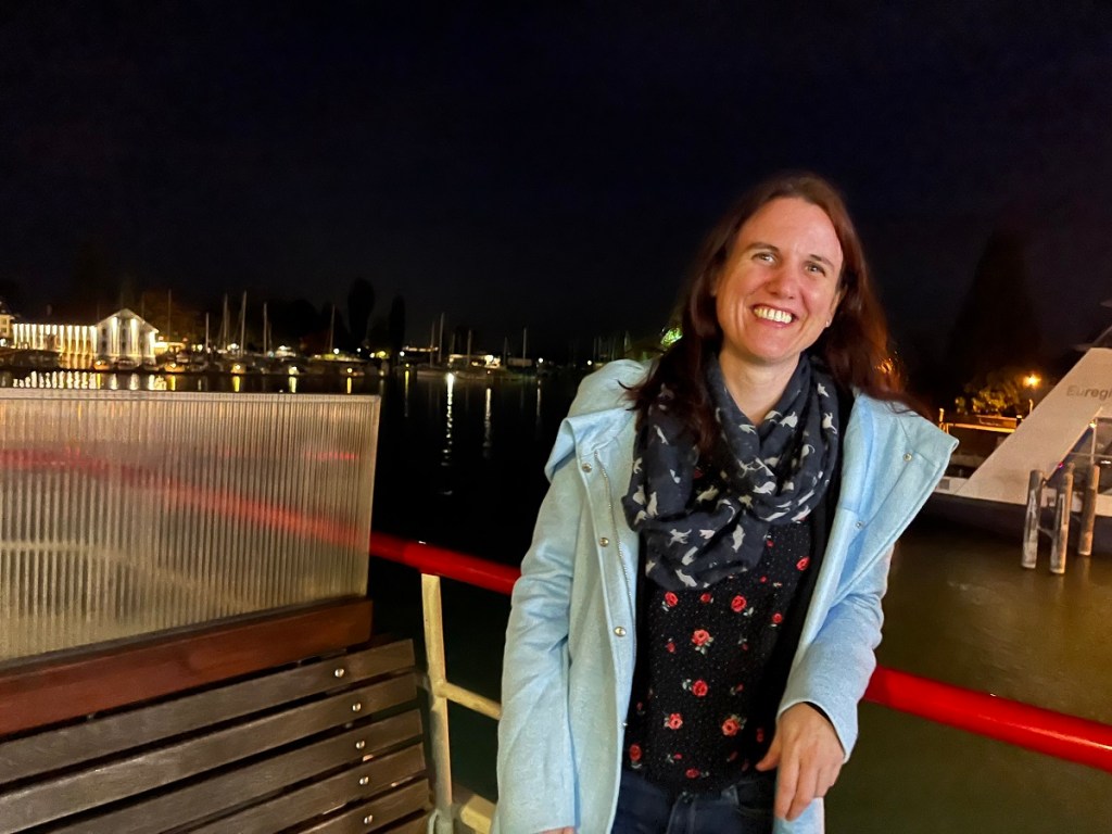 Pour se rendre à Friedrichshafen depuis la Suisse, rien de plus simple que de traverser le lac! En plus, le voyage en bateau est compris dans l’abonnement général des transports suisses… Nous ne payons donc pas un centime de plus! Nous décidons de partir jeudi 7 octobre en soirée, juste après le travail, si bien que nous traversons le lac après la tombée de la nuit. Nous ne sommes que 4 personnes sur tout le bateau! Un moment magique!
