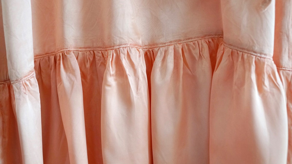Parmi les nombreux modèles que je rêvais de réaliser depuis longtemps, cette petite robe de satin rose pâle figurait en bonne et due place. Avec sa taille basse et son style vintage, elle me semblait représenter un défi digne de ce nom pour la fin de l’année 2022. En effet, sa réalisation n’est pas toute simple, surtout lorsque l’on choisit de la coudre dans un satin de viscose hyper-glissant…