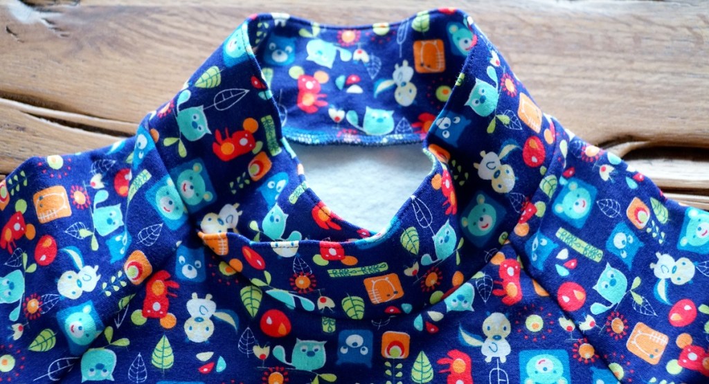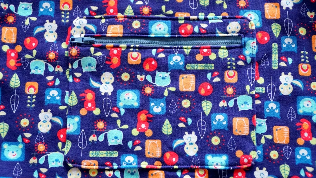 Le tissu que j’ai choisi pour cette création est un sweat tout doux qui attendait dans ma réserve depuis bien longtemps. Son motif de petits animaux colorés lui donne un côté ludique et dynamique qui sied parfaitement au petit Jamie!
