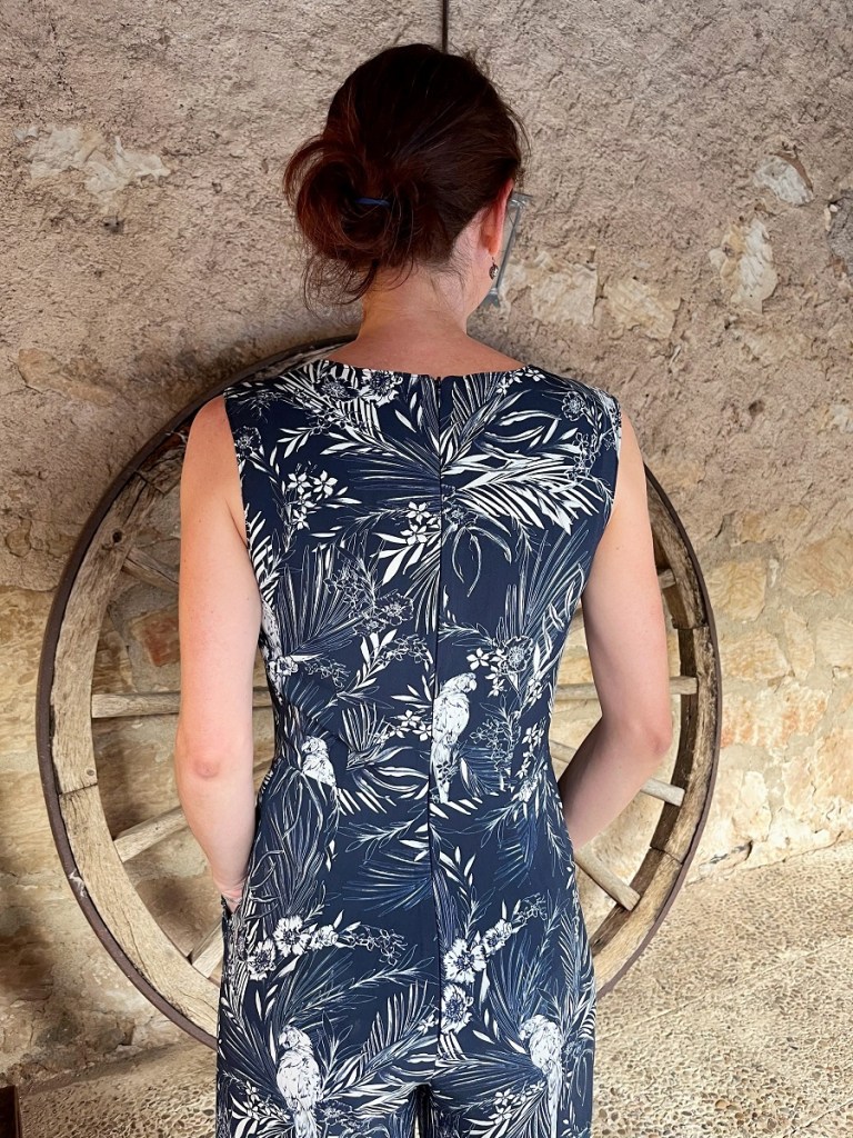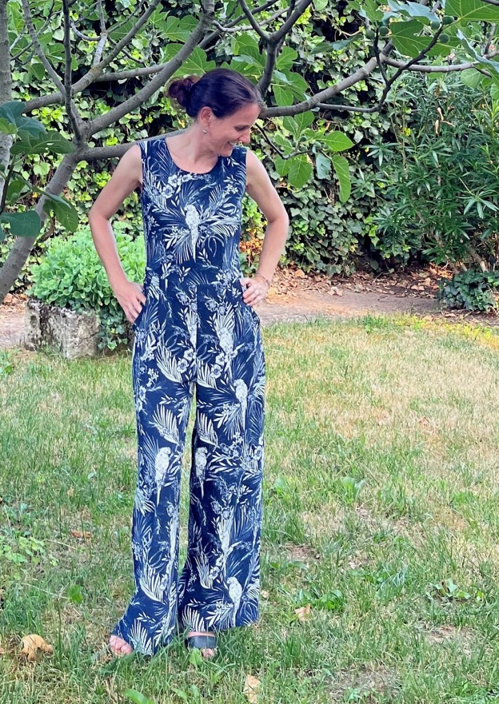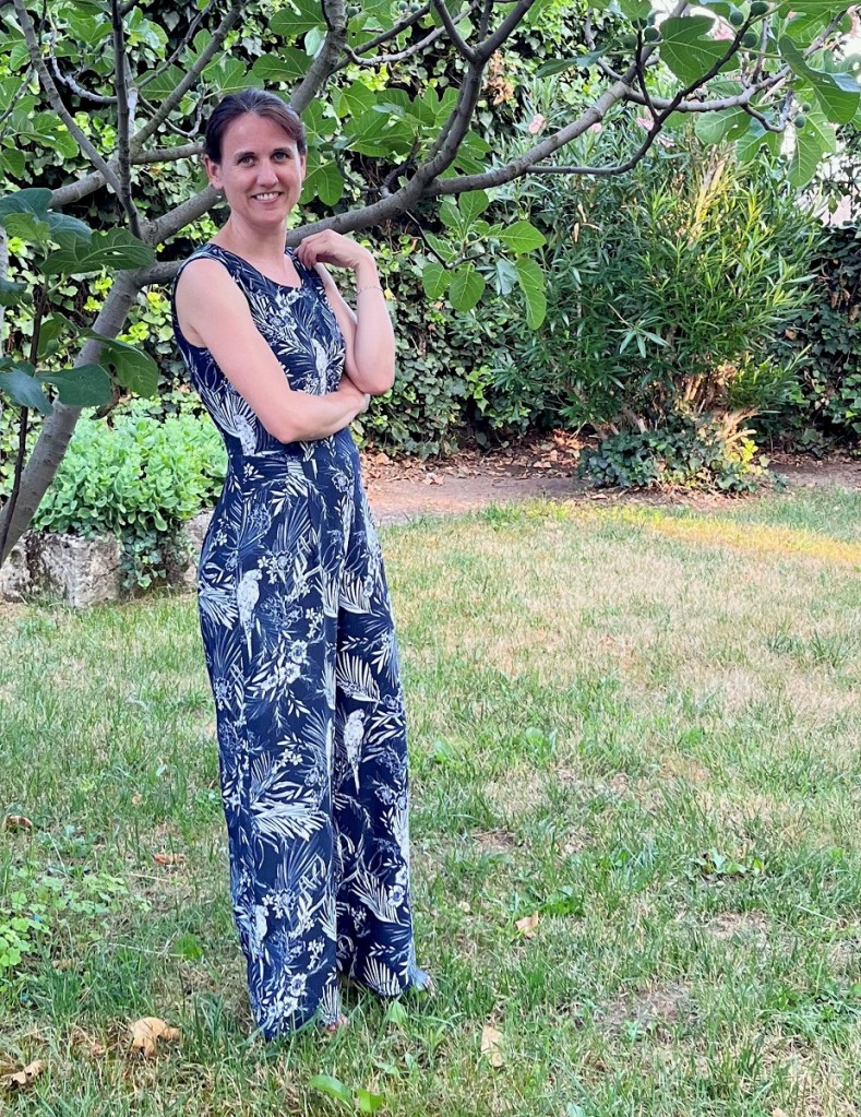 J’avais déjà choisi le modèle avant de partir en vacances. Il vient d’un magazine allemand que je n’achète pas souvent, et se trouvait depuis longtemps sur ma liste de créations possibles. La combinaison pantalon était juste parfaite pour ce projet vacances: simple à coudre et confortable à porter, le parfait modèle estival! En plus, je n’ai encore jamais eu le plaisir de coudre une combinaison, c’est donc une première.