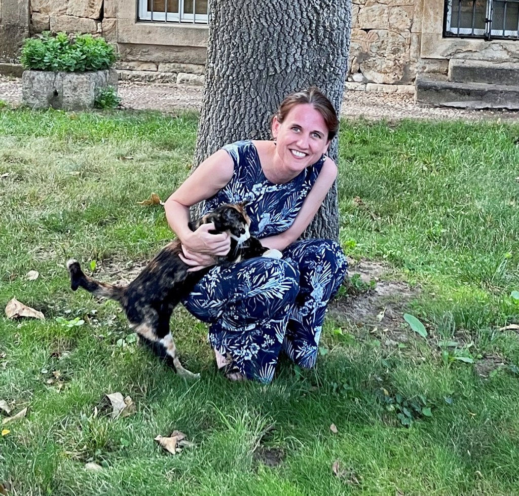 La combinaison me va à la perfection – sans aucune modification du patron! – et rencontre un franc succès pendant la fête d’anniversaire de mon beau-père. Même le chat a insisté pour se joindre à la session photos. 🙂 Heureusement que les températures sont redescendues pour ce jour, ce qui fait que j’ai pu apprécier ma combinaison pantalon à sa juste valeur face à la fraîcheur des fins de journée sur le haut-plateau de Salamanca. Merci à Héctor et à sa tante Lula pour la session photos!