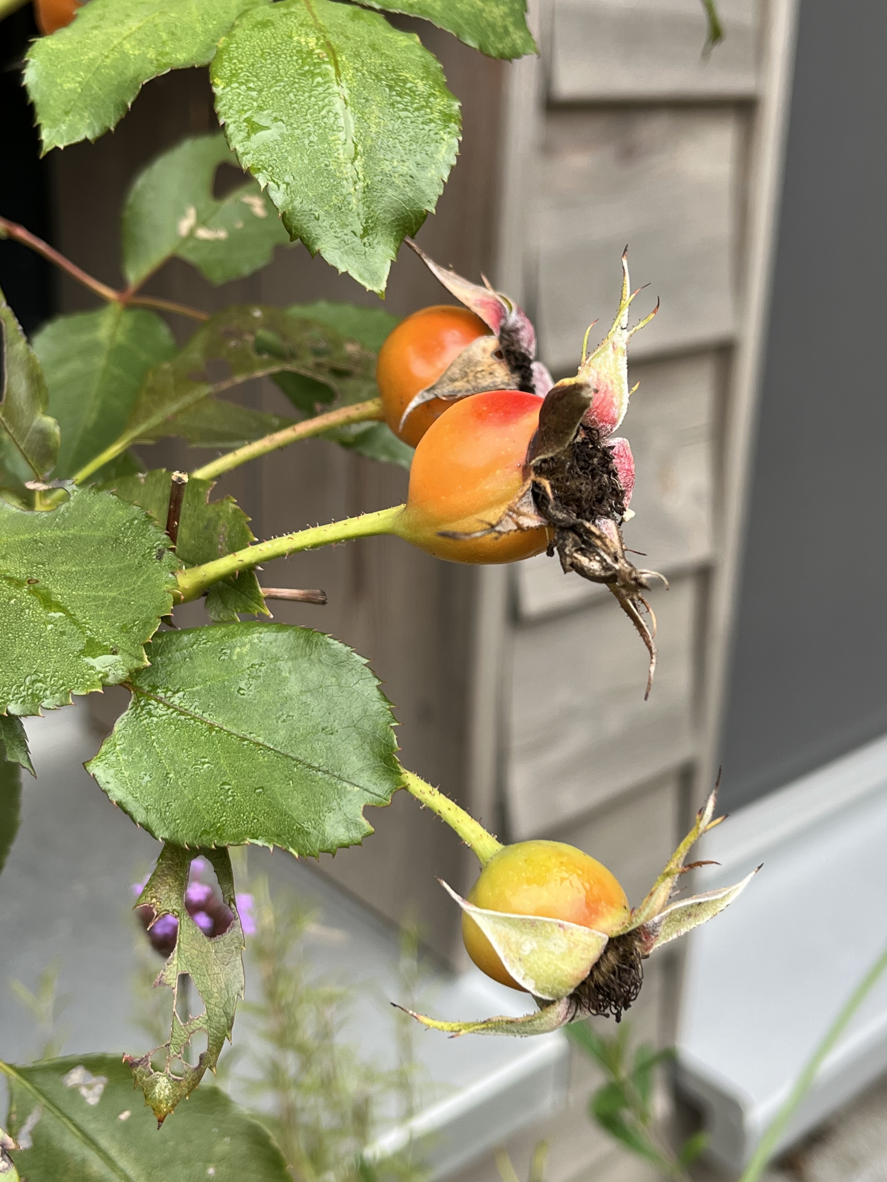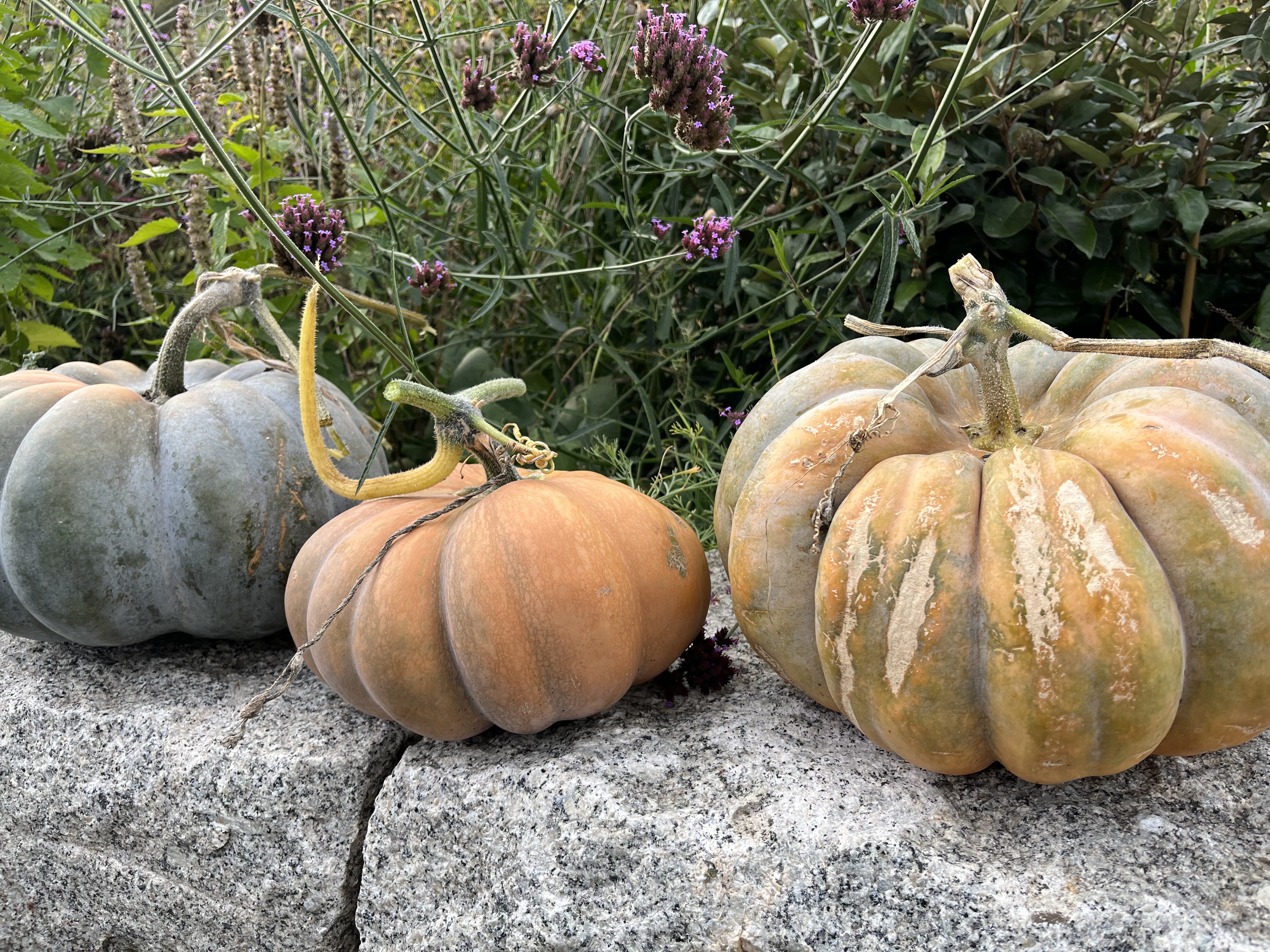 A l’automne, les couleurs de notre jardin changent. Et la fin de l’été signifie surtout la récolte des courges – musquées cette année. Deux d’entre elles sont énormes, les autres un peu plus petites. Elles nous donnent d’excellentes soupes! Nous observons avec intérêt le ballet des merles autour de notre aubépine qui affole les oiseaux avec ses baies d’un rouge vif. Les fleurs violettes de la verveine bonariensis fleurissent longtemps et font les joies des insectes, en particulier des papillons, avant l’arrivée des premières gelées.