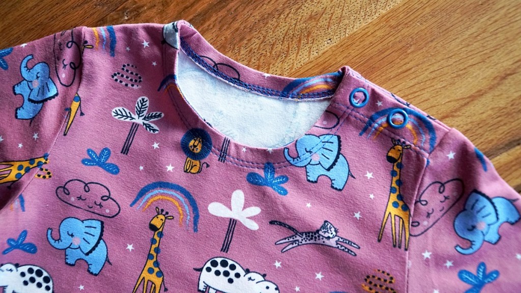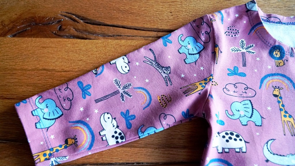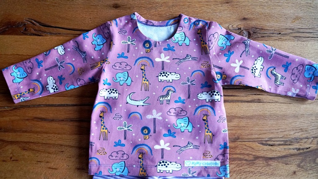 J’ai acheté assez récemment ce jersey de coton violet avec son motif d’animaux. Le coupon se trouvait tout en haut de ma caisse de tissus jersey. Pourquoi chercher plus loin quand le bonheur est si proche? Je réalise un petit pull tout simple avec une encolure qui présente des boutons pressions sur l’épaule. Le modèle vient – comme très souvent pour mes créations bébés – du magazine Ottobre. Plus précisément il s’agit du modèle n°4 de Ottobre 4/2023.