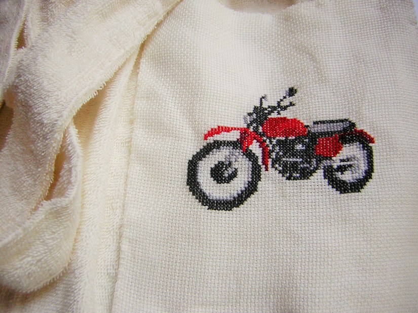 Mes broderies terminées se retrouvent généralement sur des objets utiles: des coussins, des sacs, des napperons, des torchons, des serviettes de bain… J’aime beaucoup également appliquer la broderie sur une planche en bois ou la suspendre pour en faire une décoration murale.